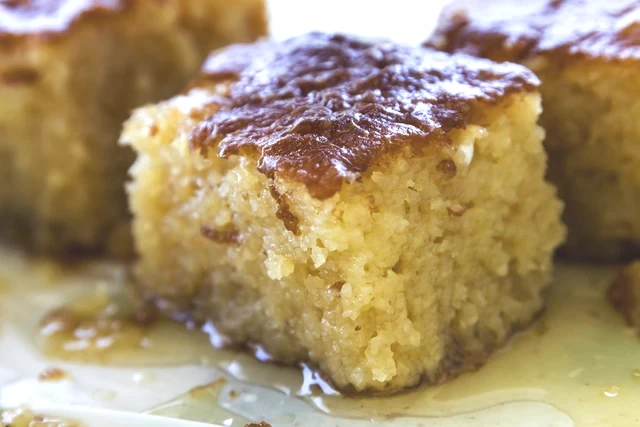 Fırından çıkan sıcak kekin ilk sıcaklığı geçtikten (yaklaşık 5 dakika) sonra, üzerine soğumuş şerbeti eşit şekilde dökün. Şerbeti çekip soğuduktan sonra dilimleyerek yardım edin.