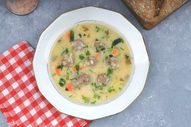 Sıvı yağı tencereye koyun, doğranmış havuç ve patatesleri ekleyip 3-4 dakika soteleyin. Ardından sıcak suyu ilave edin. Su kaynamaya başladığında unlanmış köfteleri yavaşça tencereye ekleyin. Patatesler ve köfteler yumuşayana kadar orta ateşte pişirin. Bir kasede yumurta sarısı ve limon suyunu çırpın, yemeğin suyundan biraz alıp ılıttıktan sonra tencereye yavaşça ekleyin. Bir taşım daha kaynatıp ocaktan alın.